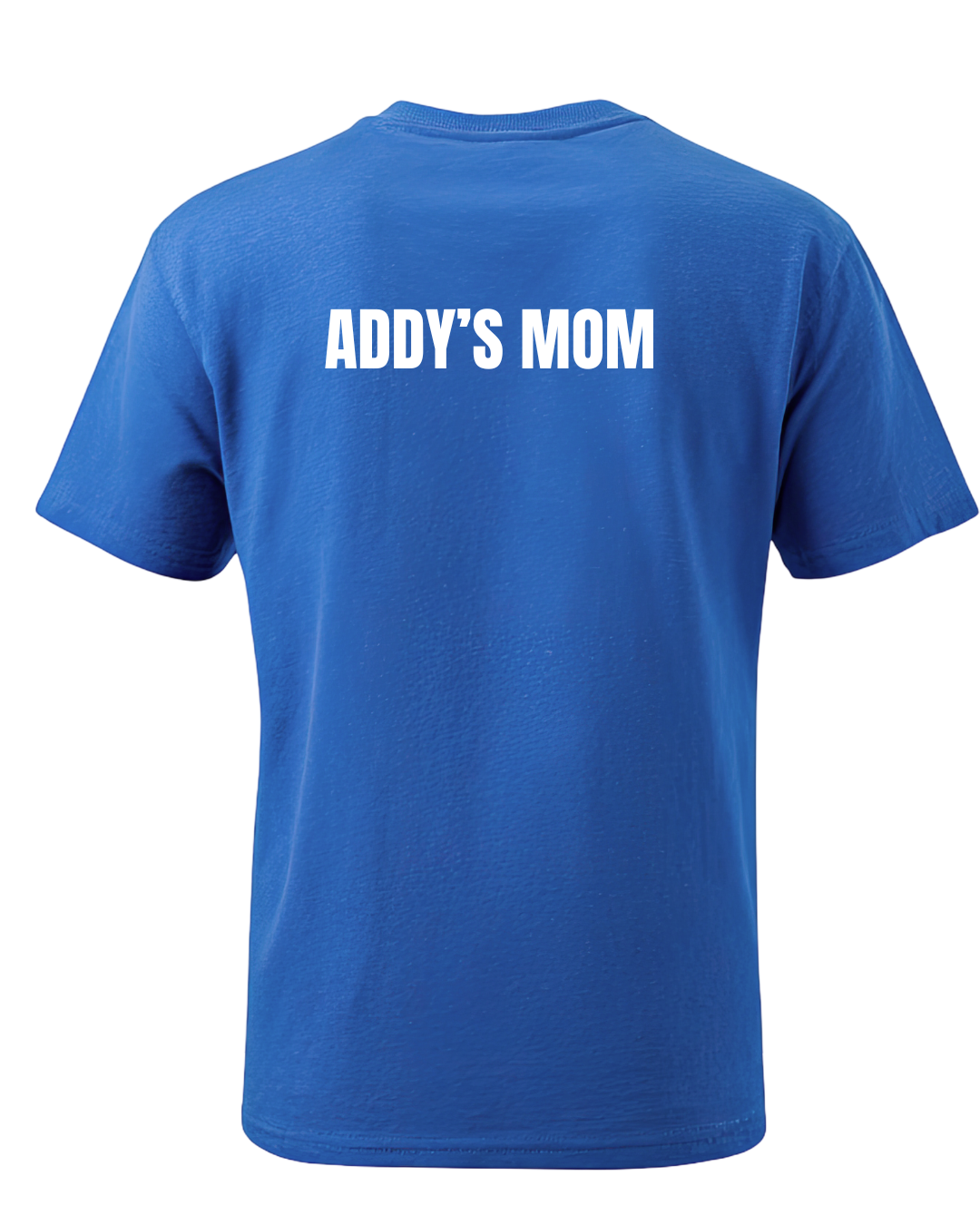 Blue Gildan Cotton T-shirt. Parents may also customize the back of the t-shirt like the second image for an additional $5 plus tax. If customization is added, please email Twisters at [email protected] with what you would like it to say. There is a maximum of 20 characters (if it is more than 10, it will be divided into two lines).